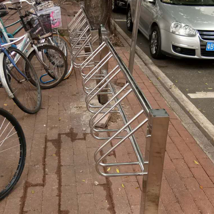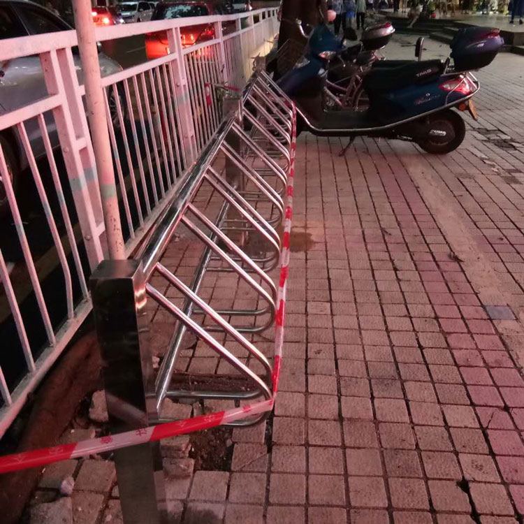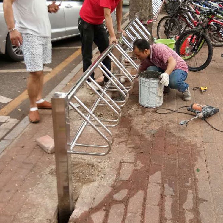 304不銹鋼立式自行車停車架安裝實(shí)物圖展示: