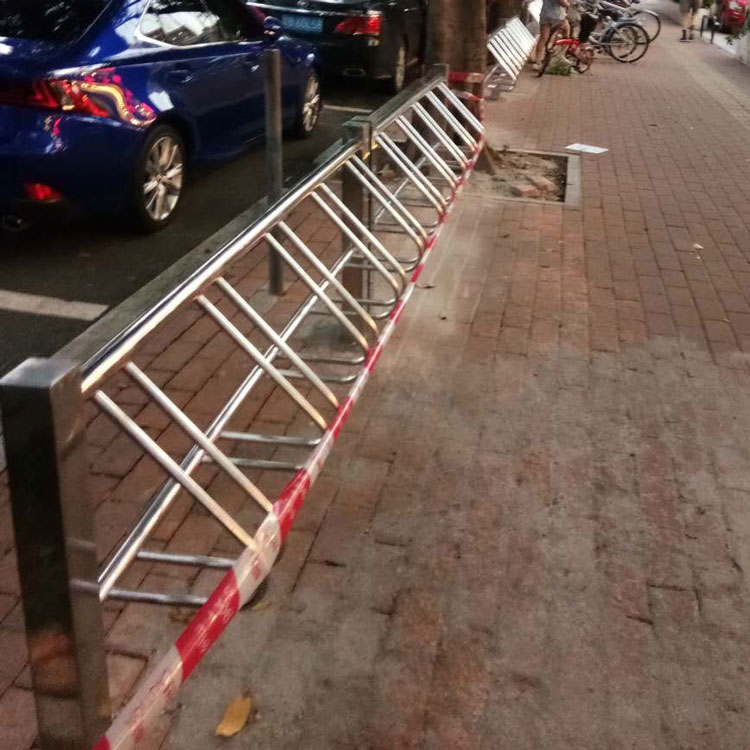 - 100米304不銹鋼立式卡位式自行車停車架安裝在深圳福田區(qū)百花路