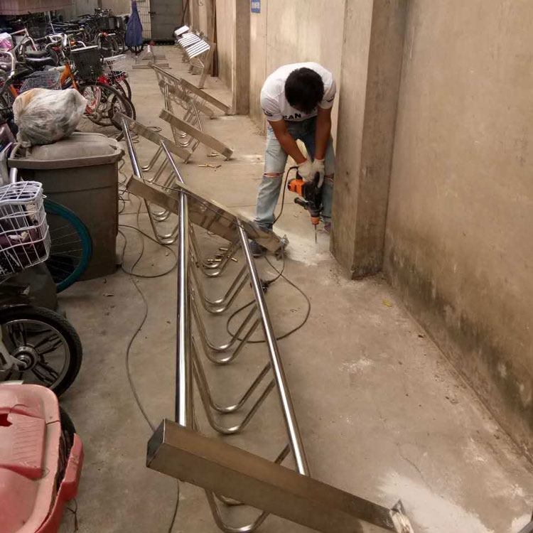 - 12月15日304不銹鋼立式自行車停放架安裝在廣州黃埔