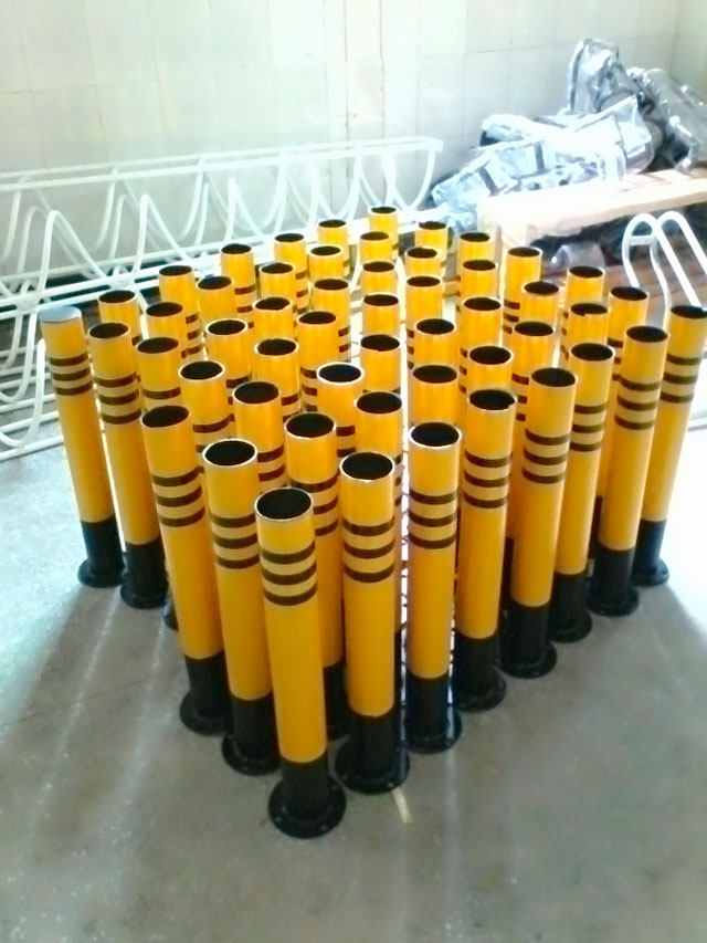 3.貼黃黑或紅白反光膜,或者噴漆,底部采用鏍絲或鋼釘固定。