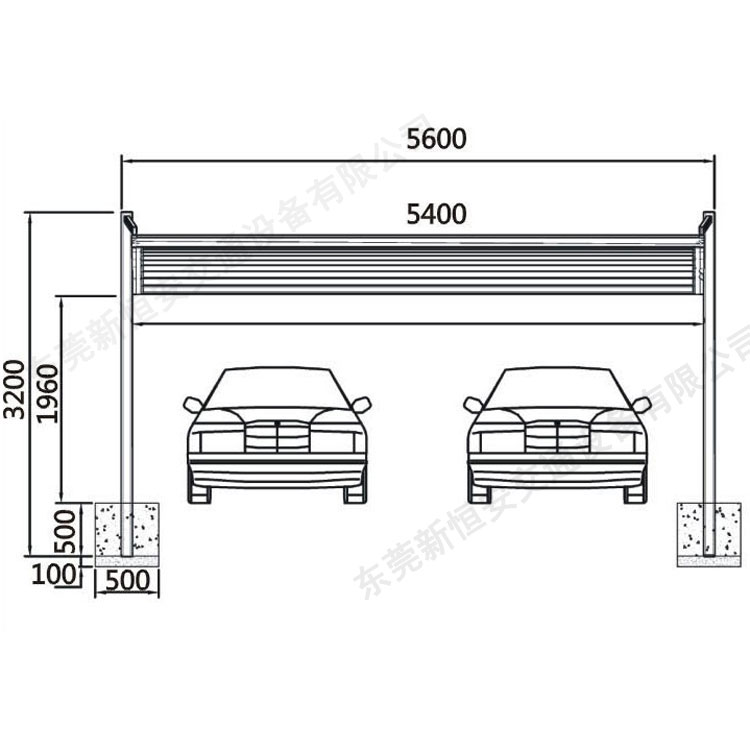 四、鋁合金汽車車棚尺寸規(guī)格簡圖