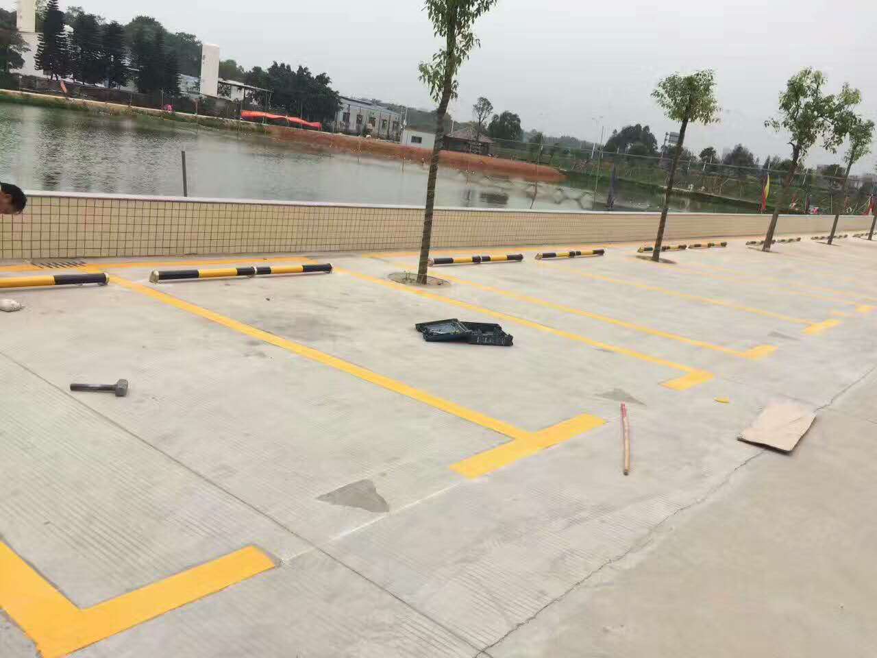 新恒安交通設(shè)備松山湖停車位劃線實物圖拍攝: